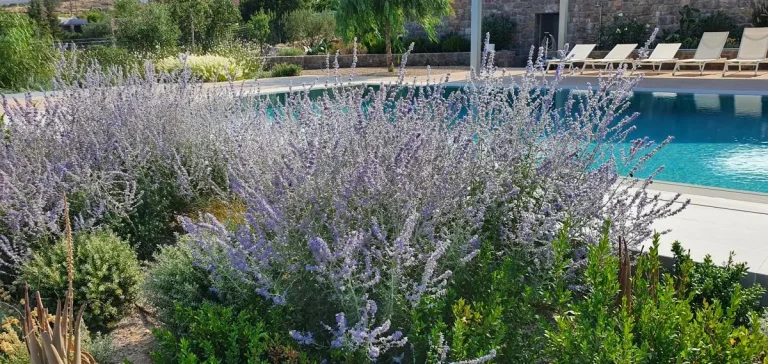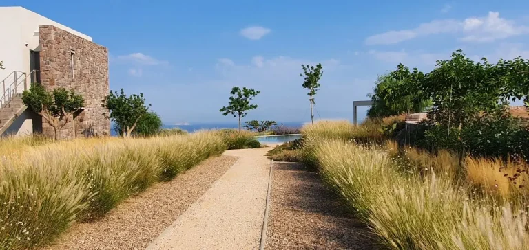Κάθε έργο σχεδιάζεται με βάση τις κλιματικές συνθήκες της Αίγινας και τη σωστή επιλογή φυτών για εύκολη συντήρηση.